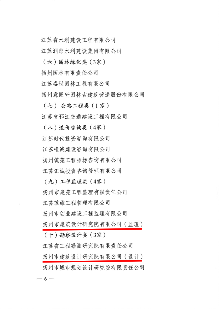 | 热烈祝贺扬州市建筑设计研究院有限公司荣获2023年度设计类、监理类双项“扬州市建筑业先进企业”称号! 喜报传来,作为承担我院全过程工程咨询、监理、项目管理等业务的分公司,上下所有员工无不欢欣鼓舞!这一荣誉不仅是对分公司全体员工过去一年辛勤付出的肯定,更是对未来发展的期许。我公司将继续秉承“团结务实、再创佳绩”的精神,以更加饱满的热情和更高的标准,不断追求卓越,为扬州市建筑业的高质量发展贡献更多的力量。