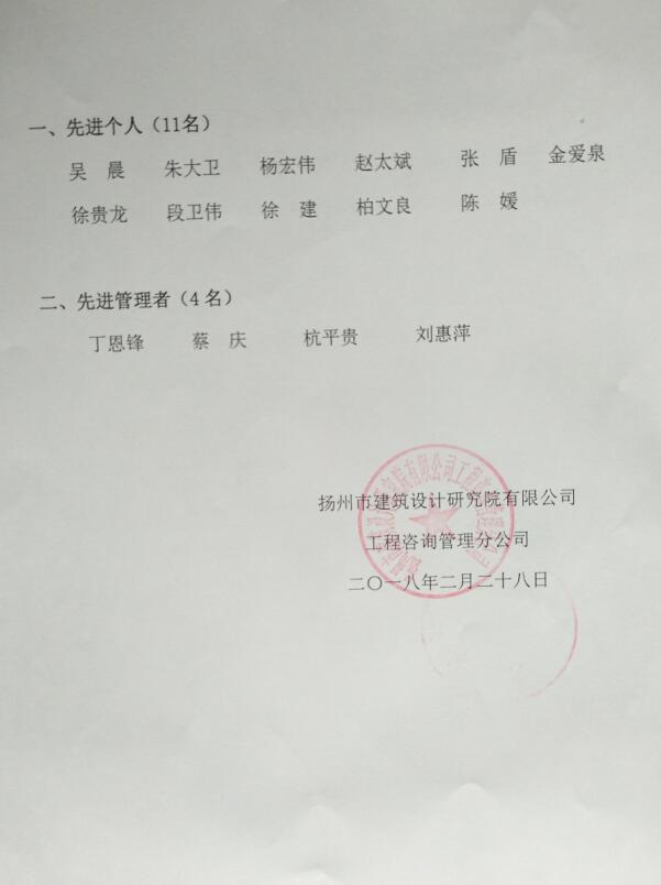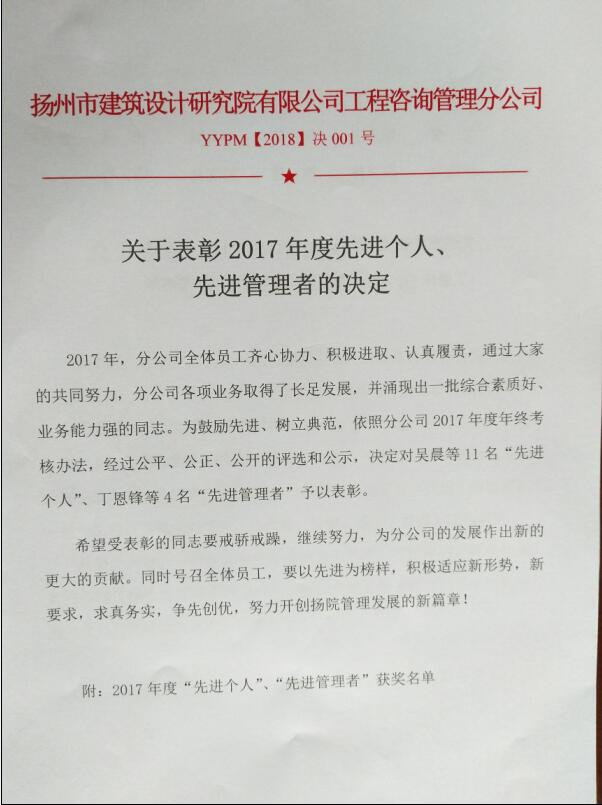 关于表彰2017年度先进个人、 先进管理者的决定