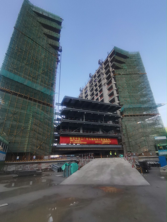 热烈祝贺中集江广中心项目T4钢结构连廊整体提升成功(12月11日8时38分,中集•江广中心龙川之窗钢结构连廊开始整体提升,至12月12日14时10分提升圆满完成,本次提升的钢连廊总重量约1000吨,共计4层,长30米、宽45.8米、高16米,提升总高度42.5米,采用“地面拼装,整体提升”的方法进行结构安装。提升到位后将进行螺栓连接和焊接固定等工作,以实现钢结构连廊与两侧塔楼的可靠连接。)江广中心项目由我司承担工程监理服务,项目总建筑面积46万平方,是江都广陵融合区地标建筑。
