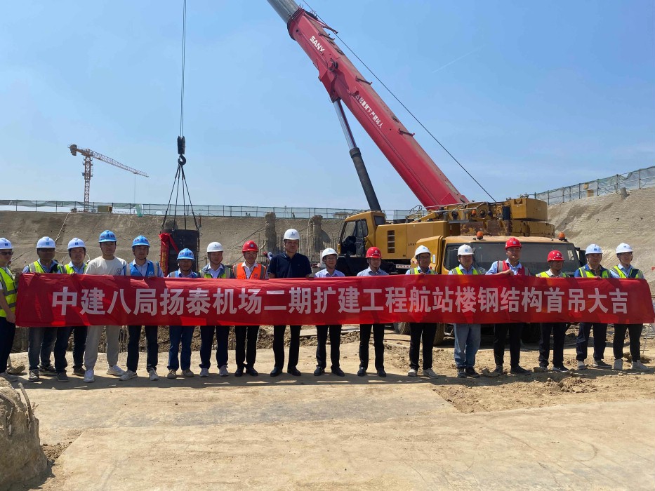 扬州泰州国际机场T2航站楼钢结构工程首吊吊装完成