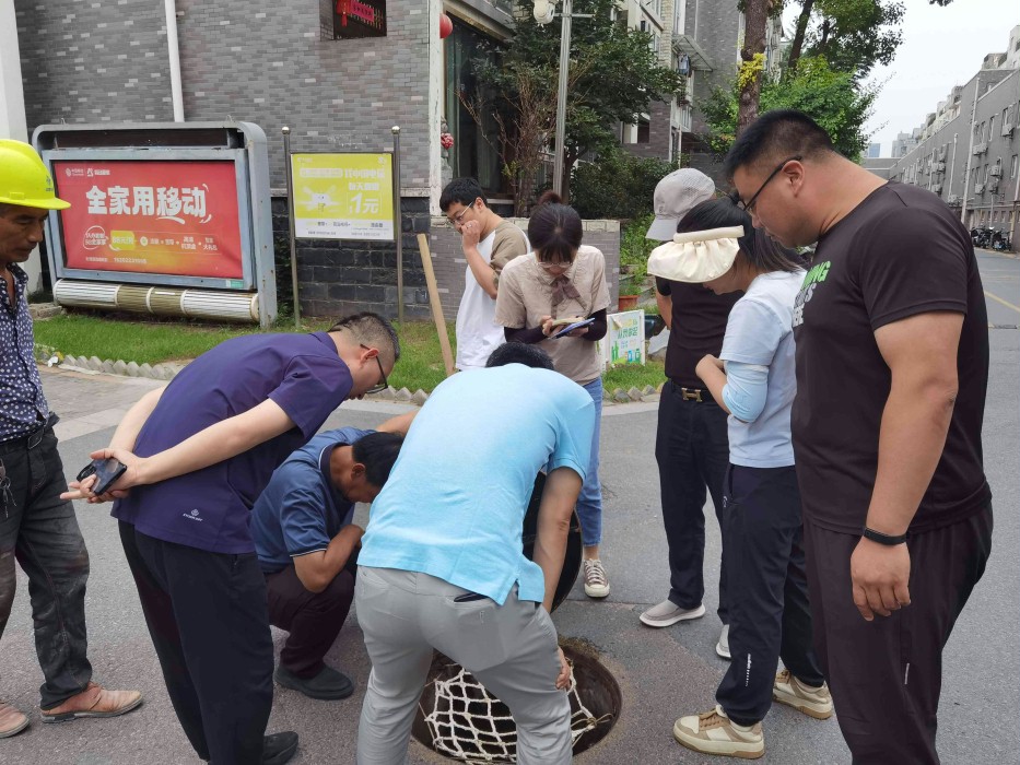 2024年6月25日,省、市住建领导来到邗江区排水达标区建设现场,抽查邗江区排水达标区建设(新盛片区)情况。