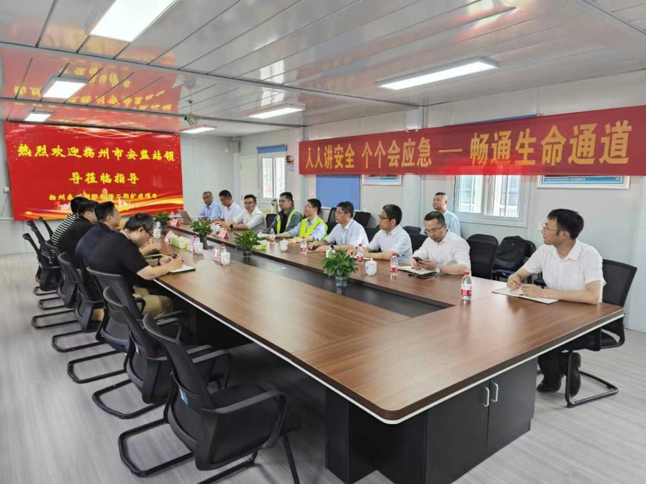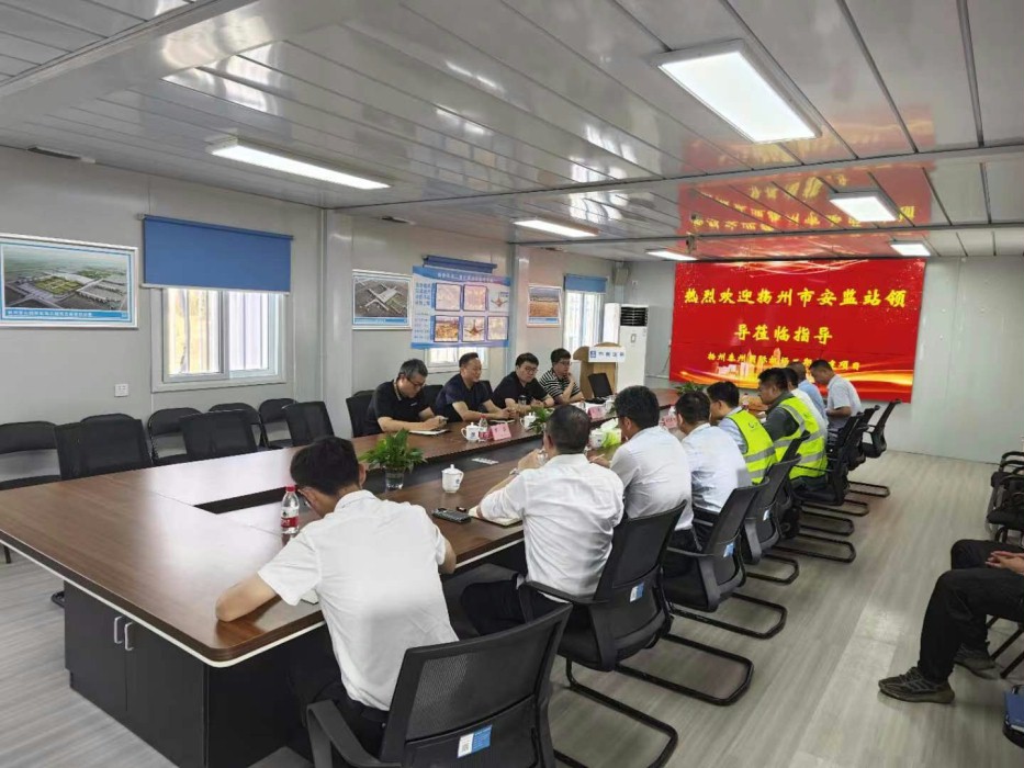 7月3日,扬州市安监站站长一行调研机场二期扩建航站楼工程,全过程咨询单位扬州市建筑设计研究院有限公司、施工单位中建八局进行项目进展情况汇报,机场公司董事长张贵联、二期扩建副总指挥徐长富参加调研活动。
