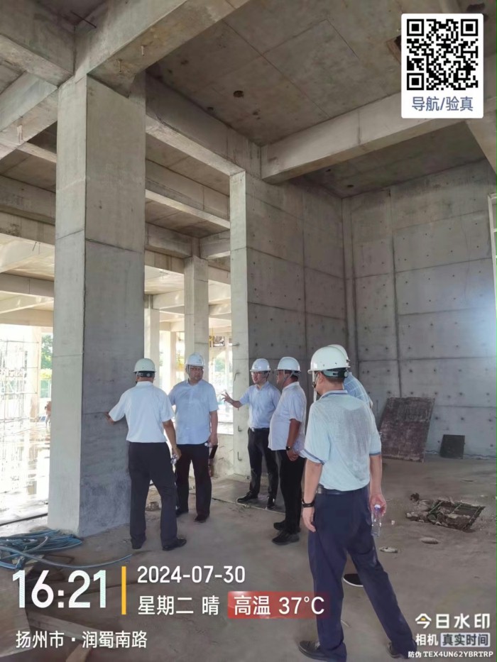 7月30日下午,扬州市中级人民法院张院长一行莅临扬州市中级人民法院审判法庭项目现场指导工作,华创公司颜华森总经理陪同检查。法院领导通过调研对现场进度表示满意,要求再接再励,对下一阶段安全文明施工提出了进一步要求。