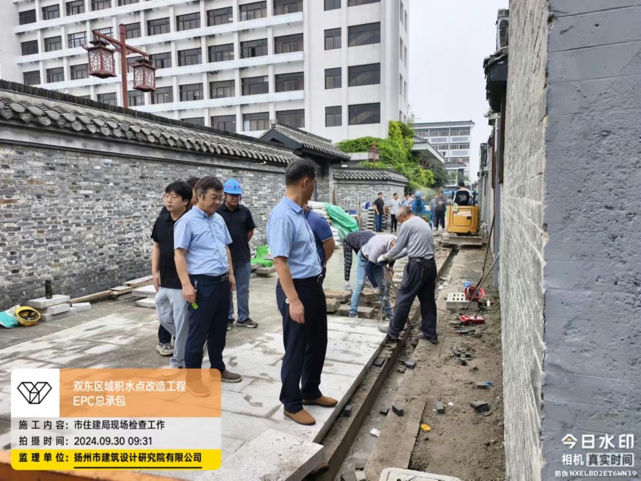 9月30日,市住建局骆局长带队对双东区域积水点改造工程进行检查并指导工作,现场骆局长强调要彻底解决大莲花桥和东圈门江氏老宅周围的积水问题。目前要求设计单位复核周边街巷标高,尽快拿出设计方案。