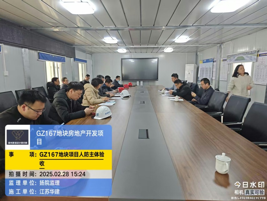 2月28日下午,扬州市人防办张继永等对GZ167地块人防地库工程进行主体验收,对现场实体、工程资料进行审查,在会议室召开验收会议,参建五方责任主体负责人、人防防护设备项目负责人均参加验收并一致同意通过验收。