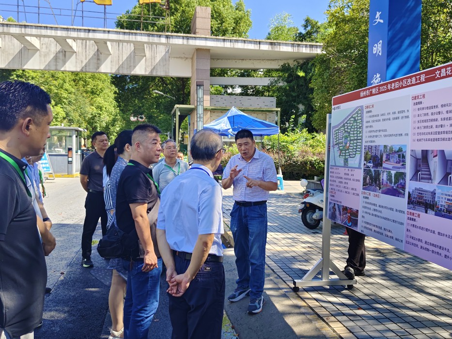 2025年8月14日上午,广陵区人大代表视察文昌花园老旧小区改造项目,在现场听取了广陵区旧改办孙流兵同志关于文昌花园改造项目的介绍后,代表们视察了施工情况并表示:文昌花园改造项目作为一项重大的利民项目,在做好项目的同时要保障在施工过程中的居民出行,做好现场的扬尘管控工作,充分考虑居民意见,为广大居民提交一份满意的答卷。
