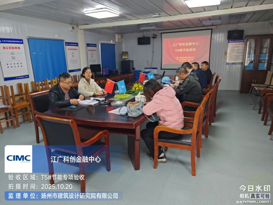 2025年10月20日上午午,监理部总监杭平贵组织建设单位代表及施工单位对江广科创金融中心项目的T5#楼进行了建筑节能分部工程验收。