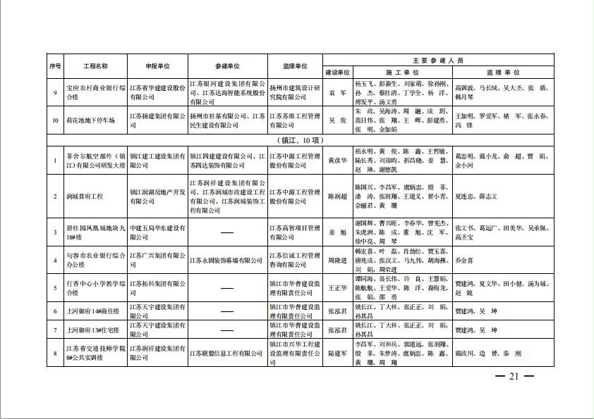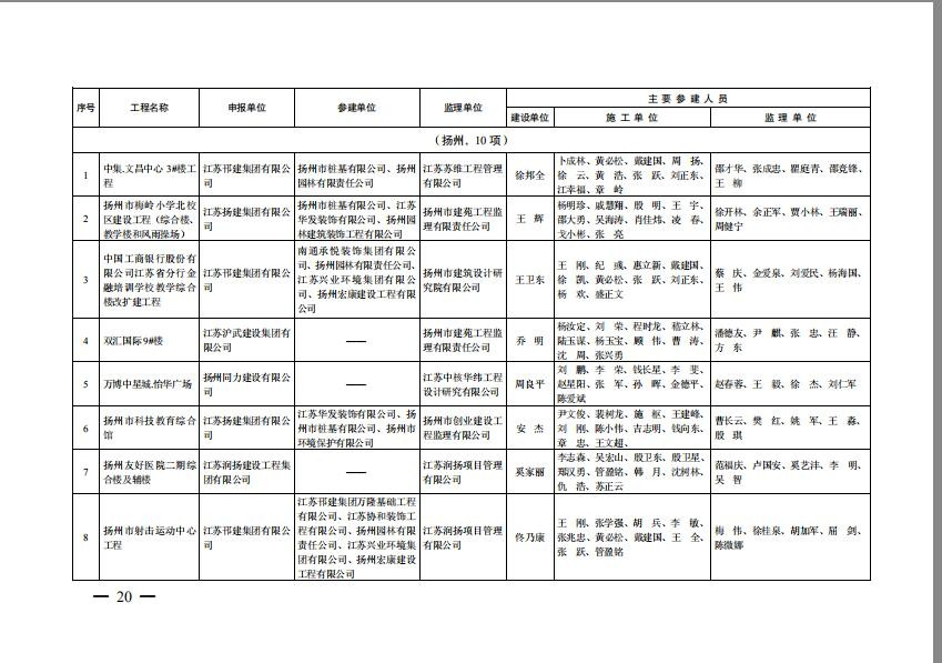 苏建质安〔2020〕60号--2019年度江苏省优质工程奖“扬子杯”获奖项目名单的通知