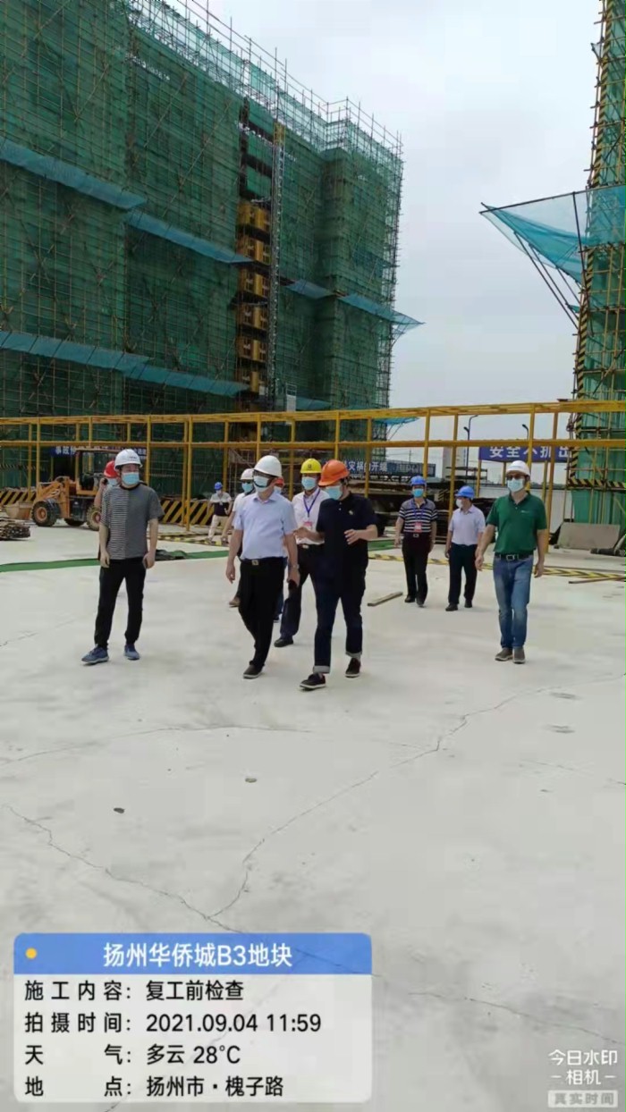 赵庆红副市长到扬州华侨城B3等区块施工现场,实地查看了各项目疫情防控情况,并详细询问了解各项目复工方案编制、管理人员到岗、安全隐患排查、工人安全教育、工人工资发放、施工材料组织和施工力量准备等情况。