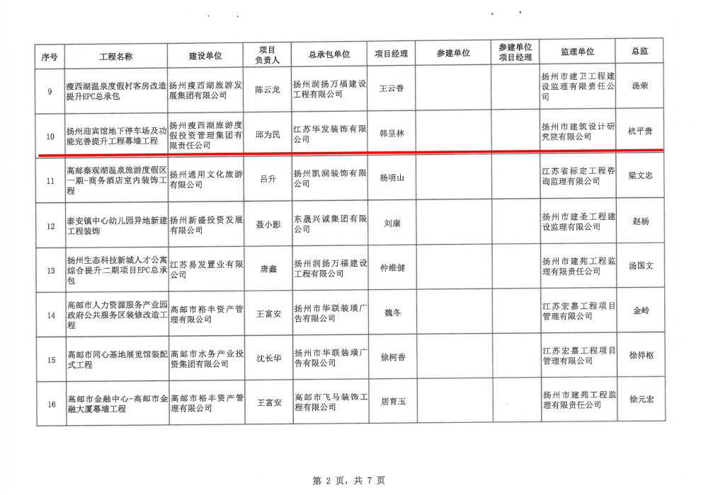 近日,扬州市住房和城乡建设局公布了2023年度扬州市优质工程奖“琼花杯”获奖工程名单,由我公司承监的6个工程项目获得该奖项。获奖项目分别为西湖科技创业园四期项目、瘦西湖健康驿站建设工程、迎宾馆地下停车场及功能完善提升工程幕墙工程、中杭酒店日用品科创园二期项目装饰工程、扬州市建筑设计研究院有限公司科技研发中心、扬州市梅岭小学上方寺小区。